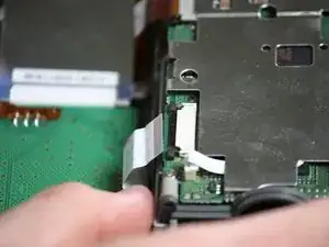 Осторожно извлеките белую шлейф‑ленту из разъёма.