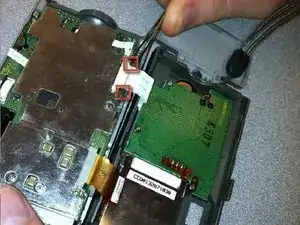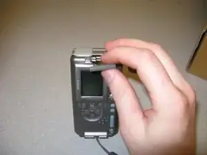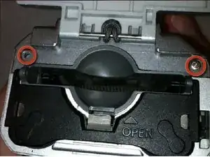 Используйте отвёртку Phillips #00, чтобы вынуть два винта, расположенных в нижней части камеры.