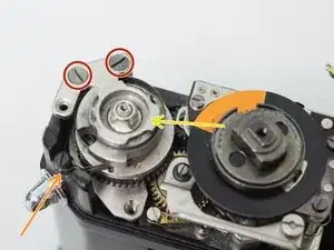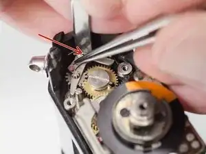 Снимите шестерню и рычаг счётчика перемотки.