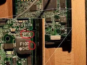 Причина, по которой я его разбирал: он упал с нескольких футов и перестал включаться. На самом деле я купил его на craigslist за $50 у человека, который не умел его ремонтировать. В итоге оказалось, что несколько пайочных соединений разорвались и компоненты отошли. Чёрный блок с маркировкой F100 повернулся набок, одно из его соединений разорвалось и выдавило соседний резистор с платы. Я заменил его на резистор из другого моего SB-600, и он снова заработал.