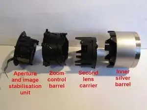 Это руководство непосредственно применимо только к этой конкретной модели, тем не менее, другие объективы компактных камер Canon имеют похожие принципы работы и конструктивные решения. Разборка объектива Canon A3150IS это подтвердила. В том случае основные отличия были: (a) объектив значительно меньше, и (b) шлейф системы стабилизации изображения (Шаг 9) несъёмный. Эти факторы усложняют работу, и в конкретном объективе была повреждена очень тонкая узкая пластмассовая часть во втором держателе линзы — проблеме, которой более крупный объектив менее подвержен.