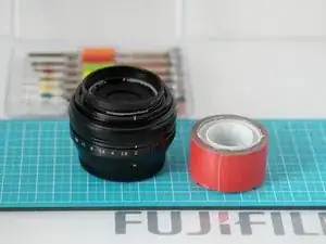 Я использую двухстороннюю толстую клейкую ленту и пустую оправу от фильтра объектива. Добавьте кусочки ленты, как показано на фото.