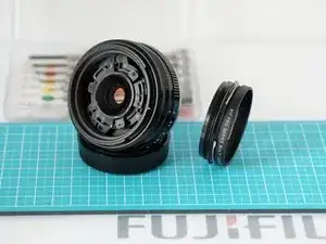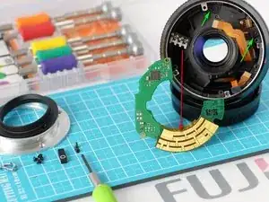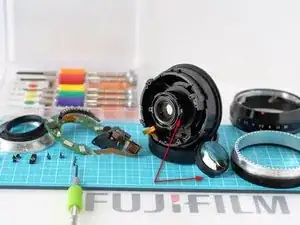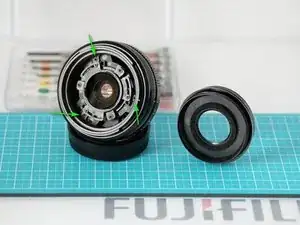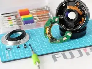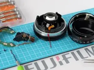 Объектив Fujinon XF 18mm F2 имеет интересную конструкцию и расположение электроники. Механически разобрать объектив и получить доступ к электронике относительно просто. Однако вся оптика со стороны задней части сидит внутри пластиковых рамок, плотно склеенных между собой. Это не как XF 27mm, где лишь несколько капель клея держат задний модуль — у XF 18mm много твёрдого и очень прочного клея. Поэтому доступ к оптике для очистки крайне затруднён.