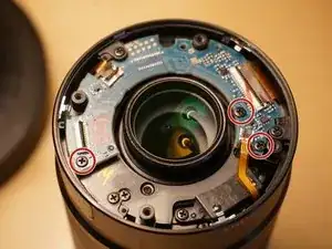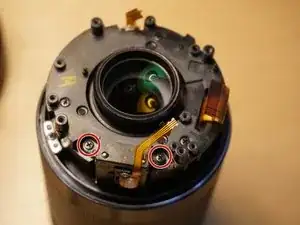 Снимите два винта датчика парковки объектива.