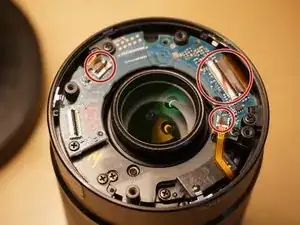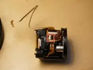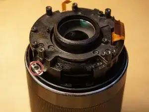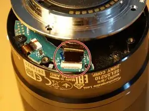 Снимите ленту Каптона с разъёма мотора диафрагмы.