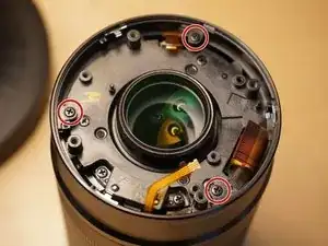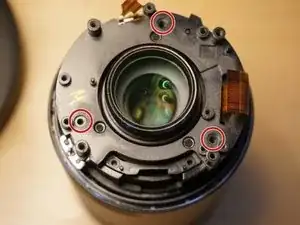 Снимите три винта с направляющих ползунов на апертурном конце объектива.