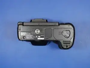 Удалите отмеченный винт из отсека аккумулятора. Этот винт закрепляет переднюю рукоять на корпусе камеры.