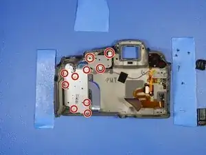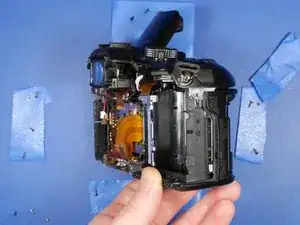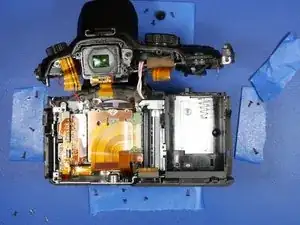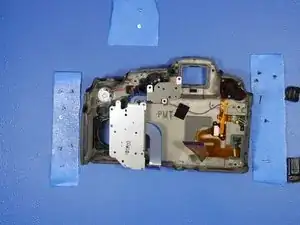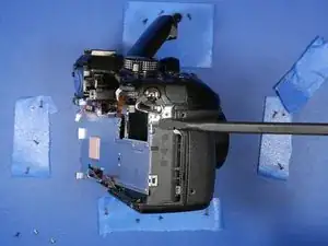 Это означает, что вспышку нужно было выдвинуть до начала всей разборки. Это нелепо, поскольку выдвижная вспышка мешает при разборке остальной части камеры и представляет собой деликатный узел.