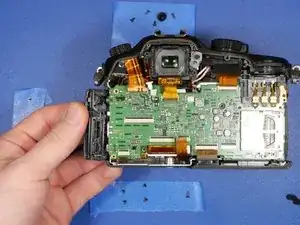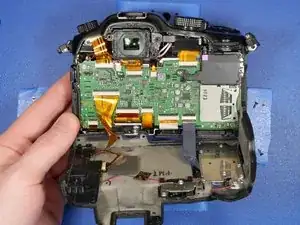 Возвращаемся к остальной части камеры. Сняв задний узел с корпуса, пришло время снять основную плату.
