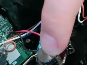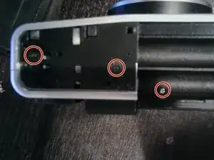 Используйте лопатку, чтобы поддеть пластиковую деталь с другой стороны, и отвинтите оба винта (другой винт вне поля зрения).