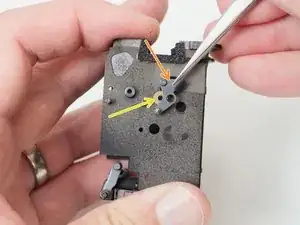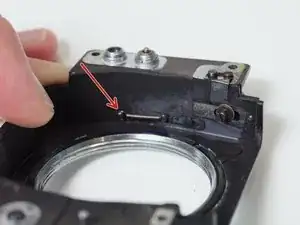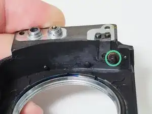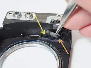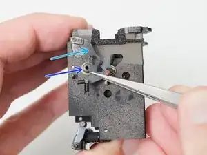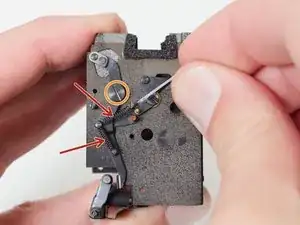 Снимите штампованную деталь со штифта на плате объектива тем же методом.