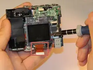 Если необходимо заменить ЖК-экран вашей Minolta Dimage Xt, следуйте этому руководству. ЖК-экран фиксируется в камере внешним корпусом и внутренним кронштейном. Это единый узел, поэтому невозможно заменить только сам экран без предварительного снятия других деталей. После извлечения экрана из кронштейна потребуется отсоединить провода, чтобы полностью снять ЖК-экран.