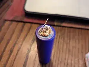 Работайте быстро и не перегревайте аккумуляторы, они могут загореться. Также не выполняйте эту операцию при полностью заряженных аккумуляторах. Если действовать быстро и заранее залудить заднюю часть крышки и верхнюю часть аккумулятора, припой должен соединиться быстро.