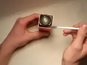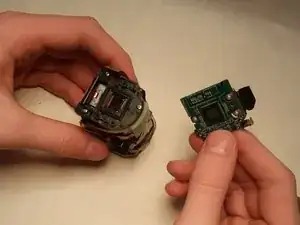 Извлеките камеру из красной части. У вас должно остаться 3 детали, не считая верхней.