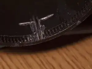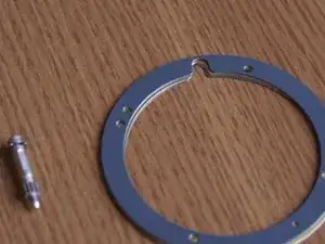 Используйте маленькую плоскую отвёртку, чтобы сделать 2 небольших канавки на плоской поверхности кольца прямо за местом, где были удалены зубцы.
