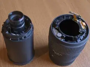 Снимите внутреннюю оптическую часть с наружной части корпуса объектива.