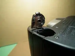 Эта камера была представлена в начале 2003 года вместе с цифровыми зеркальными камерами и является последней потребительской плёночной зеркальной камерой Nikon. Питание осуществляется от двух батареек CR2 под небольшой пластиковой крышкой. Под этой крышкой находится металлическая контактная пластина, которая крепится к самой пластиковой крышке четырьмя небольшими пластиковыми заклёпками. Поскольку батарейки создают достаточно сильное пружинящее давление, со временем эти заклёпки устают и пластина отламывается, освобождая зафиксированный пружиной скользящий зажим. Я не фотографировал отдельные шаги этого ремонта, но он достаточно прост.
