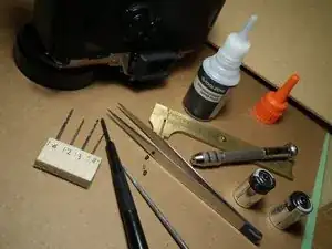 Необходимые инструменты: пинцет, патрон для штифтов, маленькая крестовая отвертка и сверло 1,3 мм, плюс сверхклей средней густоты. Также желательно иметь маленькую круглую напильник.
