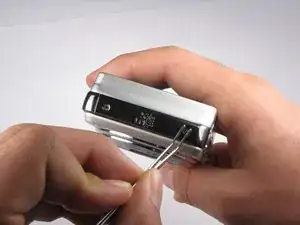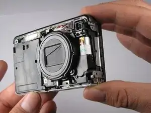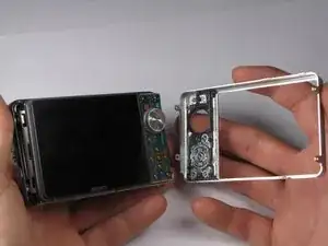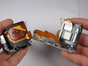 Оттяните ЖК-экран и его корпус от остальной части камеры.