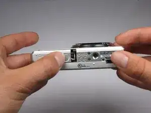 Поверните камеру так, чтобы перед Вами оказался левый бок с надписью «5x Optical Zoom».