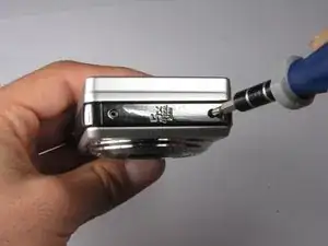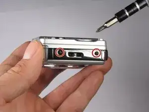 Удалите винт Phillips №0, 2.5 мм в верхней части камеры.