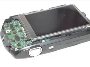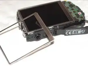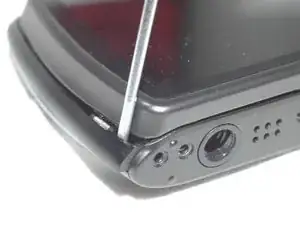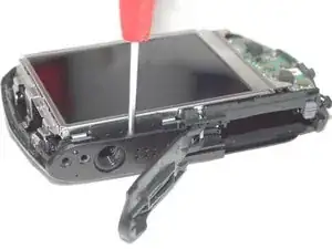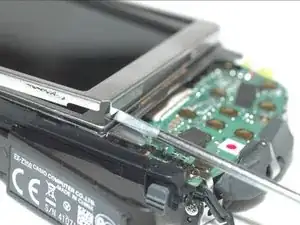 Тонкой отвёрткой подденьте металлическую рамку, удерживающую ЖК-дисплей, в одном углу.