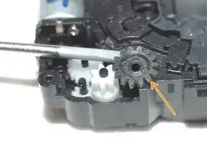 Снимите маленькую ось с помощью хороших плоскогубцев. Ось нужно вынуть, иначе зум-объектив не снимется легко