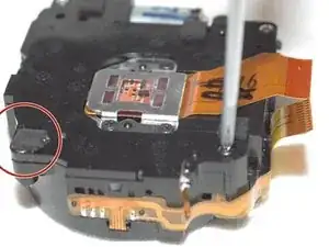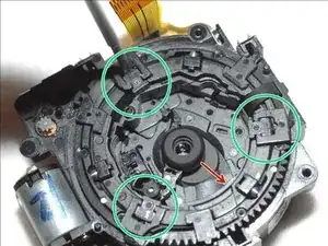 При подъёме зум-объектива стабилизирующая линза откинется вверх. Учтите это при сборке — её надо будет вернуть обратно (вниз).