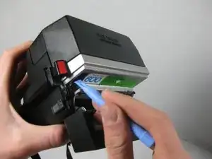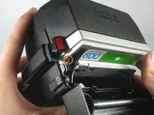 Найдите небольшую серебристую шестерню в верхнем левом углу отсека для пленки.
