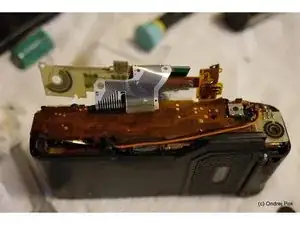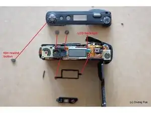 Также есть один длинный винт, доступный изнутри рядом с катушкой протяжки плёнки.