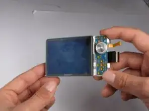 Оттяните ЖК-экран вместе с корпусом от остальной части камеры.