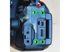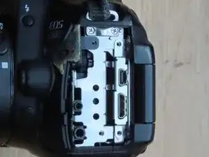 Если вы хотите удалить остатки резинок, которые когда-то держали крышки I/F терминалов, сделайте это до разборки. Они исчезнут в недрах корпуса камеры, как только вы снимете левую крышку.