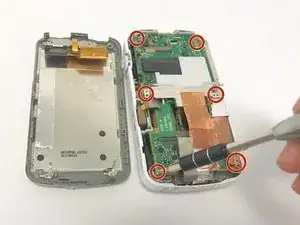 Открутите все 6 видимых винтов, которые крепят материнскую плату, с помощью отвертки Phillips (входит в набор инструментов iFixit).