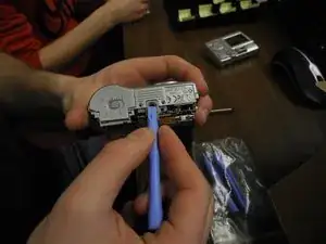 Снимите заднюю крышку камеры; для этого может потребоваться приложить силу.