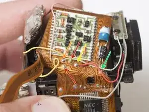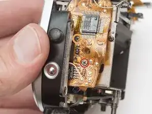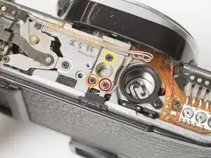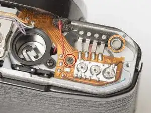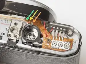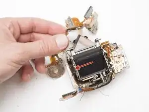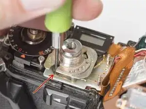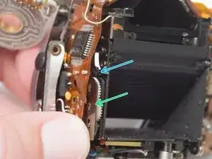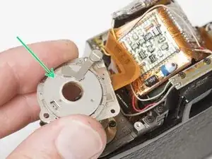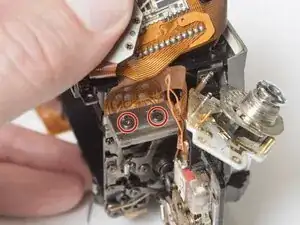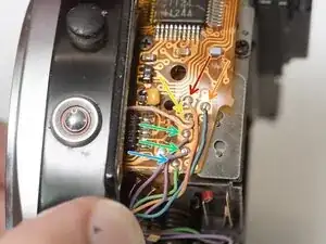 Снимите узел резистора ISO с вала перемотки. Он всё ещё прикреплён гибкой печатной платой.