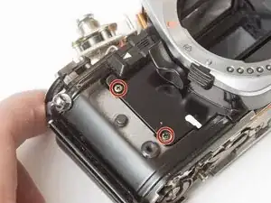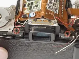 Блок TTL-замера вспышки необходимо вывести из корпуса, чтобы освободить плату для снятия.