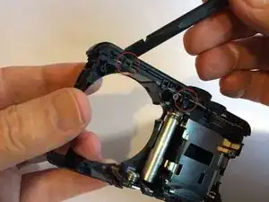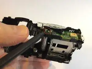 Сняв объектив, можно протестировать зум, приложив 3V батарейку к клеммам на нижней части мотора зума, который установлен на боковой стороне объектива. Меняя полярность батарейки, вы меняете направление движения.