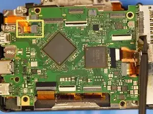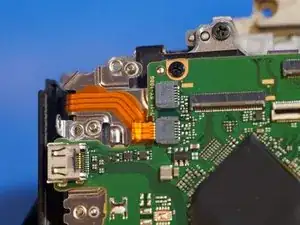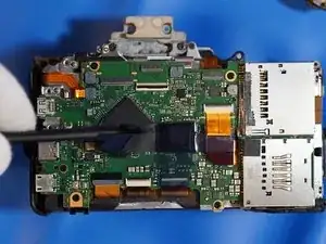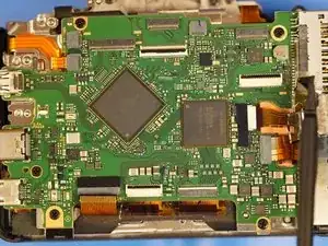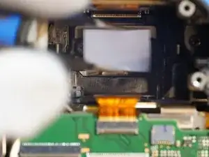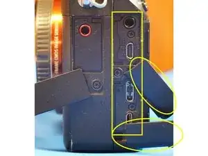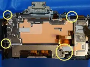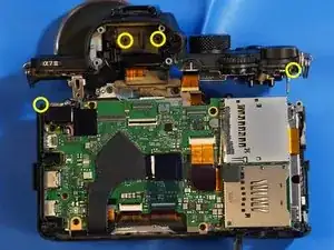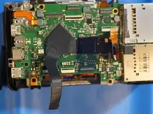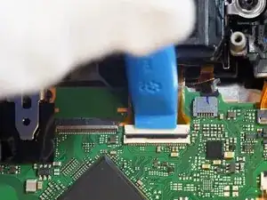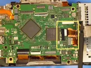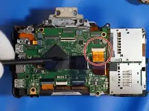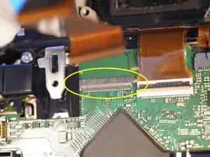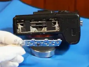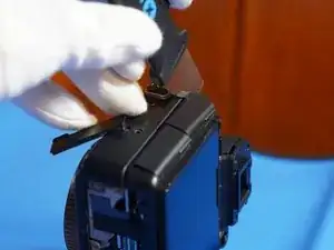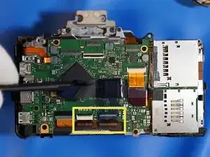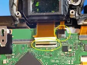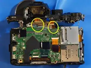 Когда задняя крышка ослаблена, отсоединяется только один ленточный кабель, который соединяет всю заднюю часть. Разъём — типа ZIF, отщёлкивается вверх в сторону верхней части камеры для ослабления.