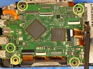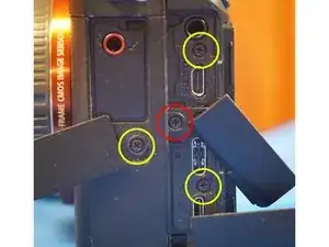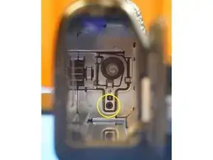 Не забудьте про одиночный винт за дисплеем. Он нужен для снятия задней крышки камеры.