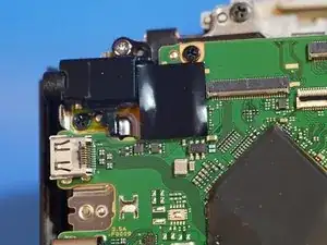 Снимите 2 винта, удерживающие разъём для наушников.