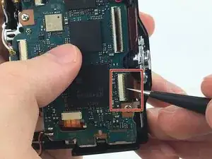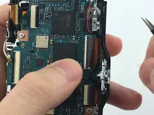 С помощью пинцета откиньте чёрную защёлку на большом разъёме внизу.