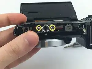 Удалите верхний винт крепления горячего башмака 3.5 мм.