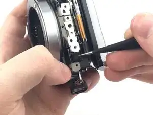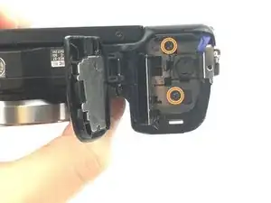 Передняя панель приклеена к рамке камеры, поэтому для её снятия может понадобиться больше усилий. Будьте осторожны, чтобы не сломать панель при отщёлкивании.