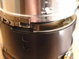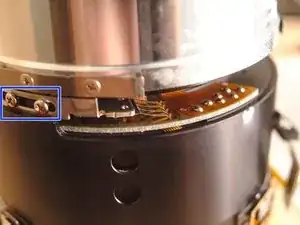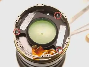 Снимите кольцо штатива, открутив три скрытых винта. Смотрите ремонтное руководство.