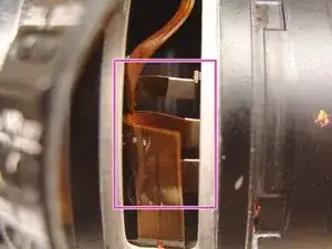 Вот причина проблемы. Внутреннее кольцо фокусировки соприкасается с платой индикации дистанции. Плата закреплена двухсторонним скотчем. Это конструктивный недостаток: со временем скотч теряет свойства и плата сдвигается.