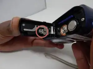 Как только вы услышите щелчок, поднимите дверцу отсека в противоположном направлении, пока аккумуляторы не окажутся полностью открытыми.