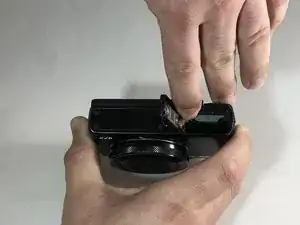 Сдвиньте задвижку крышки к центру камеры, используя палец.