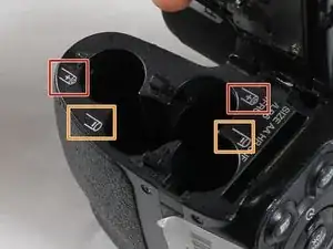 При замене аккумулятора убедитесь, что вы не переворачиваете камеру слишком сильно, так как это может повредить компоненты внутри и снаружи камеры. Вам следует заменить аккумуляторы, потому что вашей камере необходимо питание!
