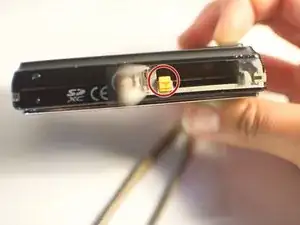 Откройте крышку аккумулятора, расположенную на нижней части камеры с правой стороны, нажав на нее и сдвинув вперед. Крышка должна открыться.