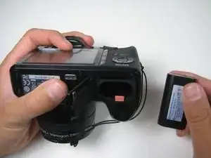 Как только аккумулятор выскочит из отсека, просто вытяните его из камеры.